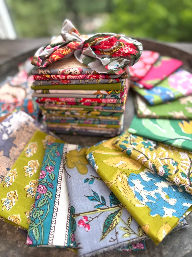 Everything about these fabrics is made by hand and the artisans that create these prints are working traditionally with centuries old techniques that have been passed down from generation to generation. The color sense from India is sophisticated and unique! Each fabric tells a story as the elements in the designs are inspired by daily life, local flora and fauna and all things from nature.
