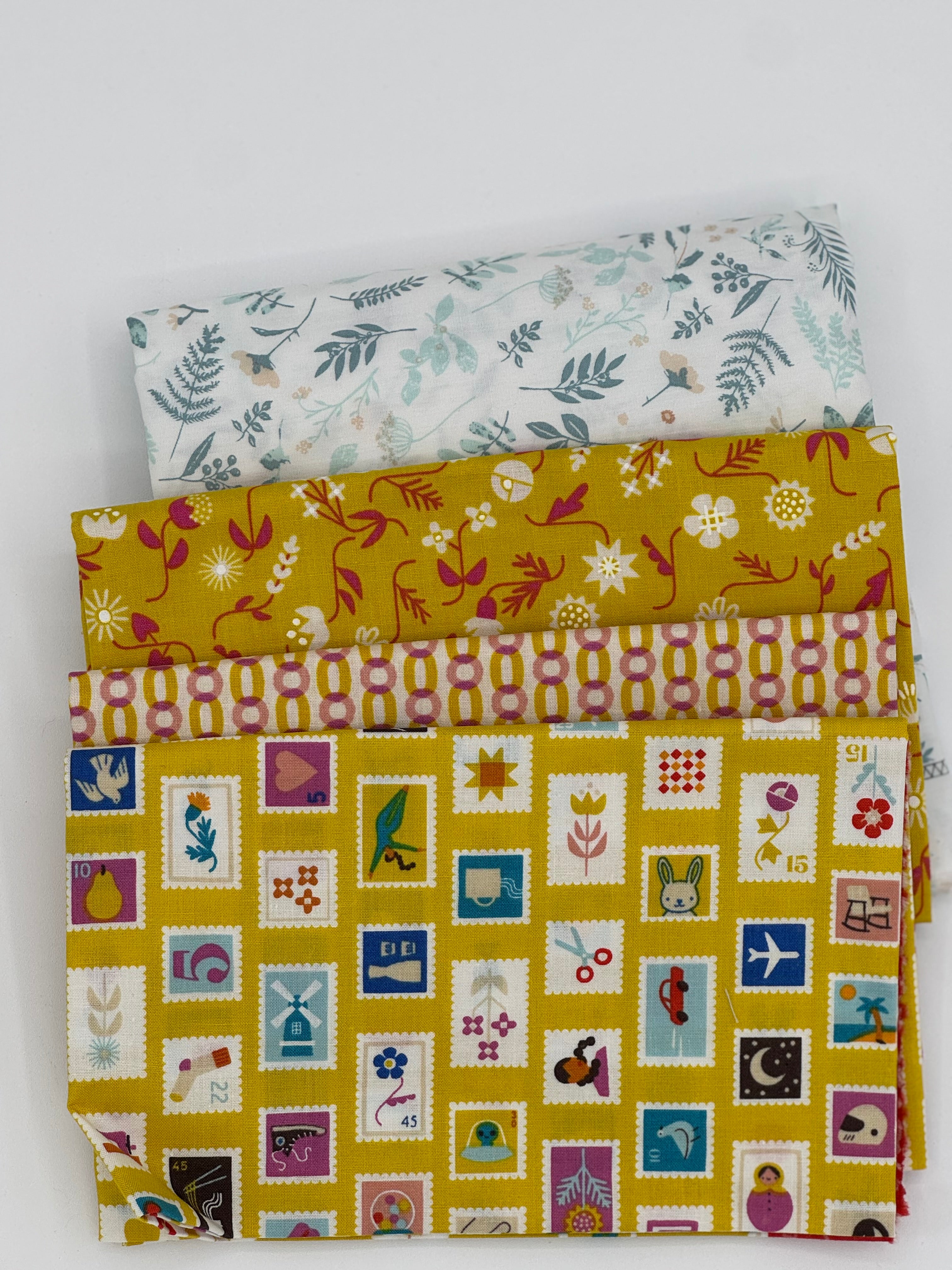 Bundle contains approximately 8 ounces of fabrics from a variety of manufacturers such as Fableism, AGF, Moda, Ruby Star Society, Cloud9 & Poppie Cotton.